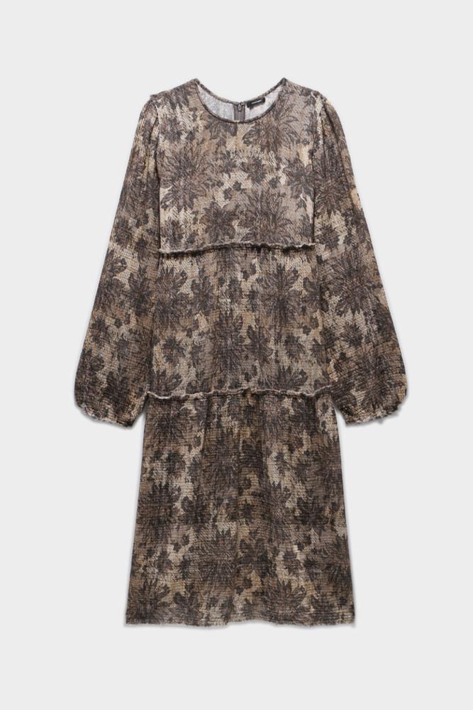 LONG SLEEVE SHREDDED RELAXED MIDI grey lace