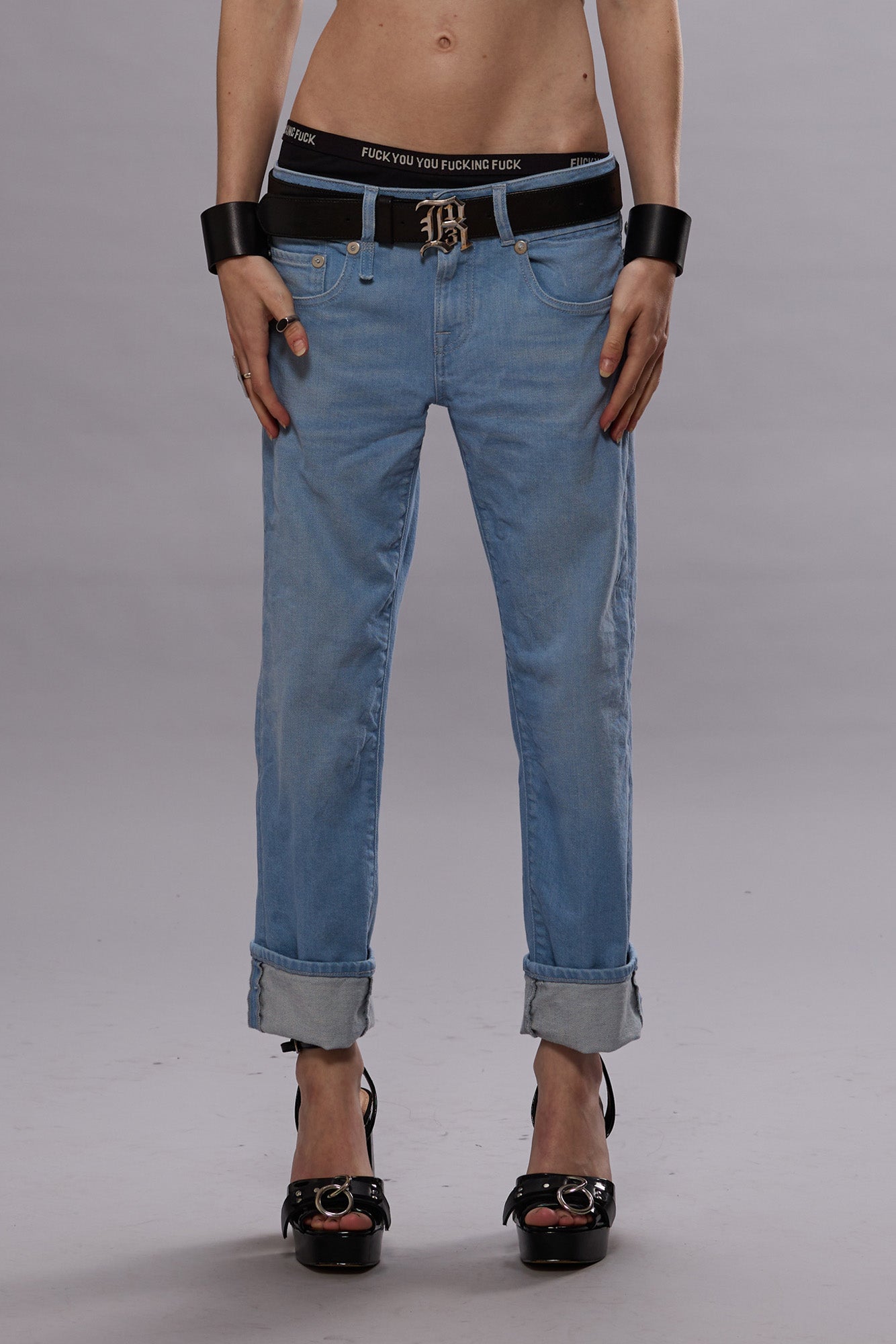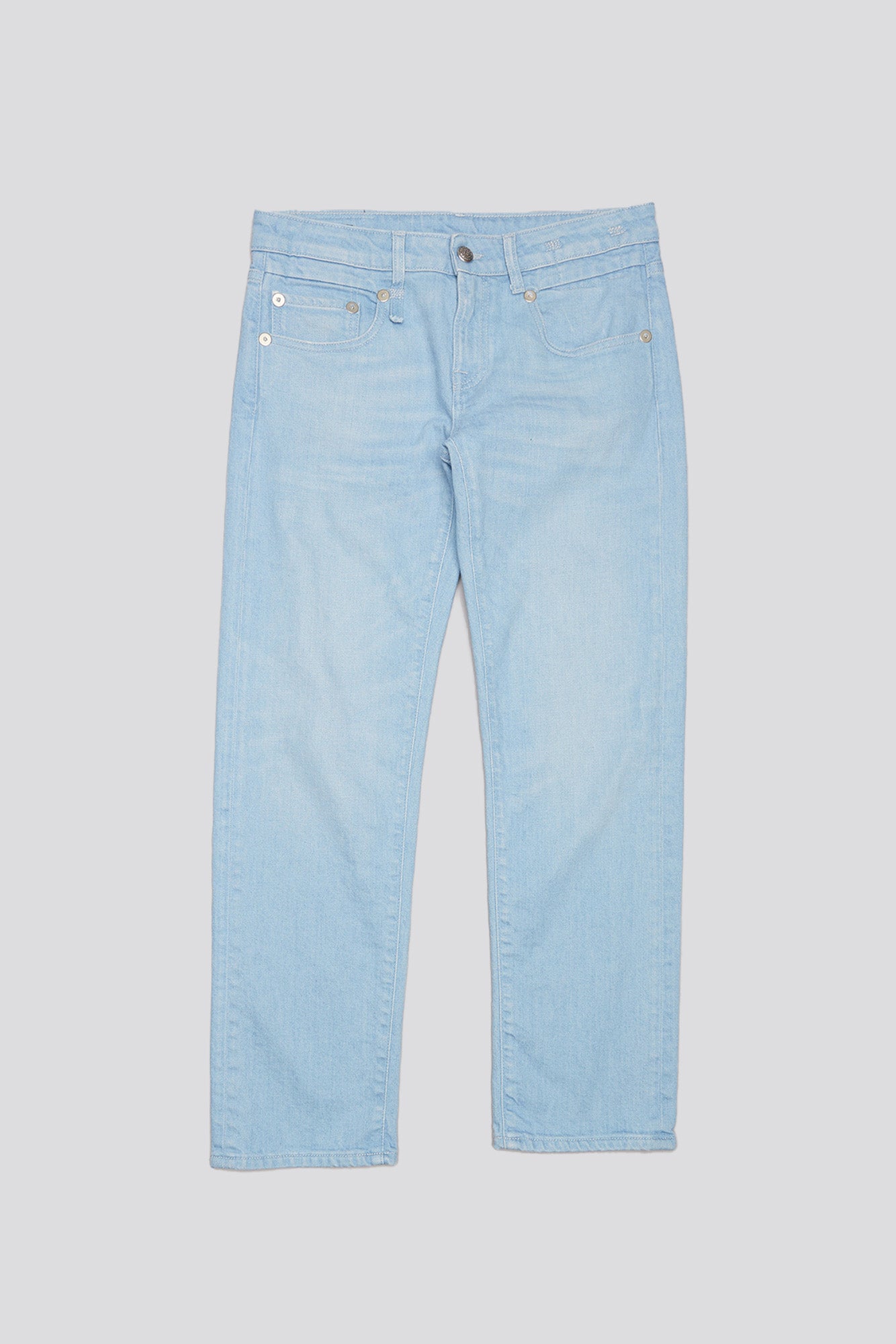 R13's iconic slim fit Boy Straight featuring a low rise and slim straight cropped leg, built with comfort stretch denim.