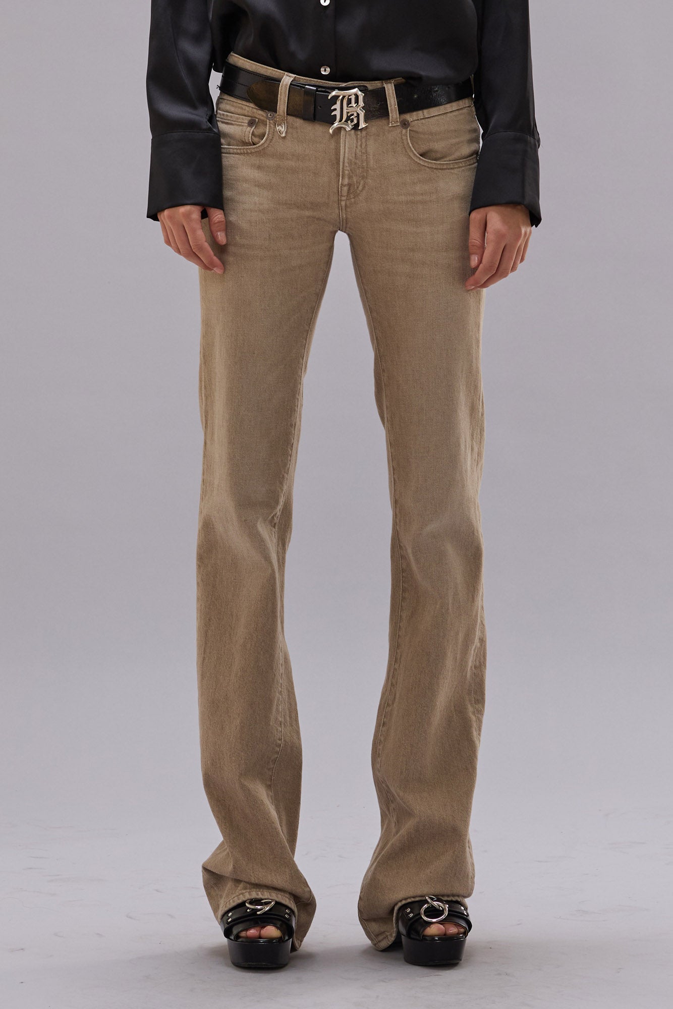 The Boy Flare is a fitted low-rise jean that flares out at the leg for a dynamic silhouette. Made from yarn-dyed comfort stretch denim, it features a subtle wear pattern and mild abrasions.