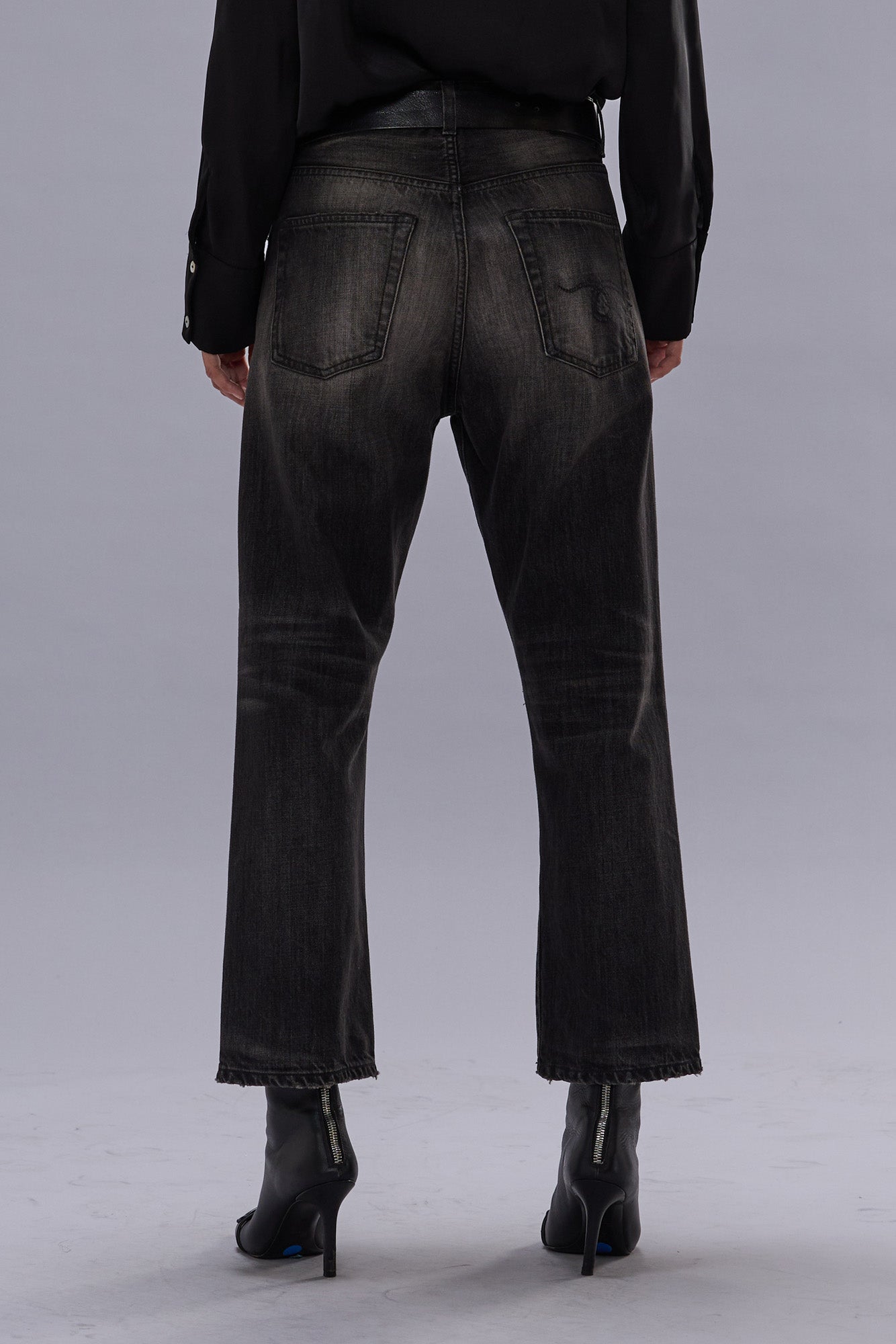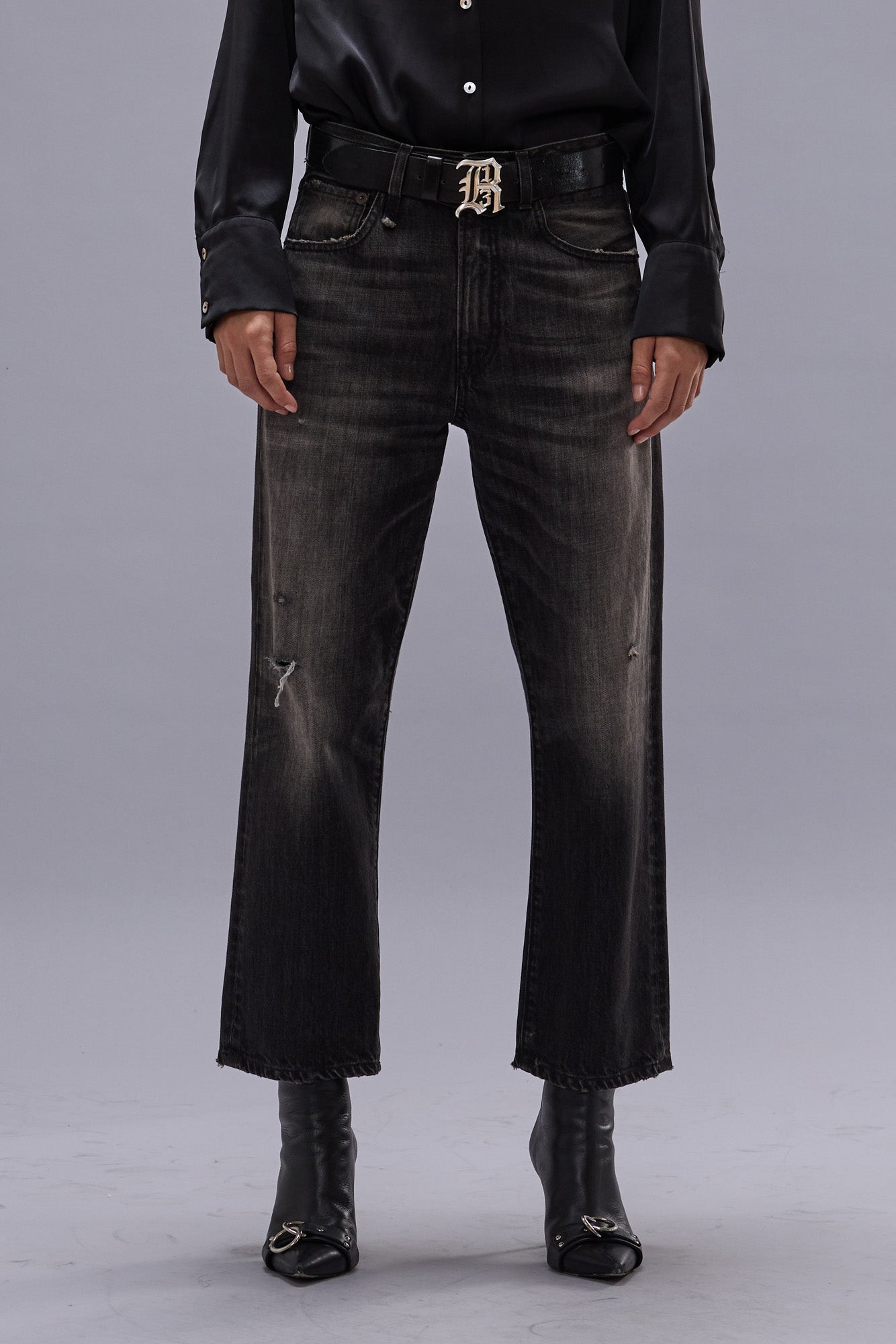 A twist on R13's classic boyfriend jean with a wider, slouchier leg. Built with 12.5 oz. rigid black denim and treated with a mildly worn wash.