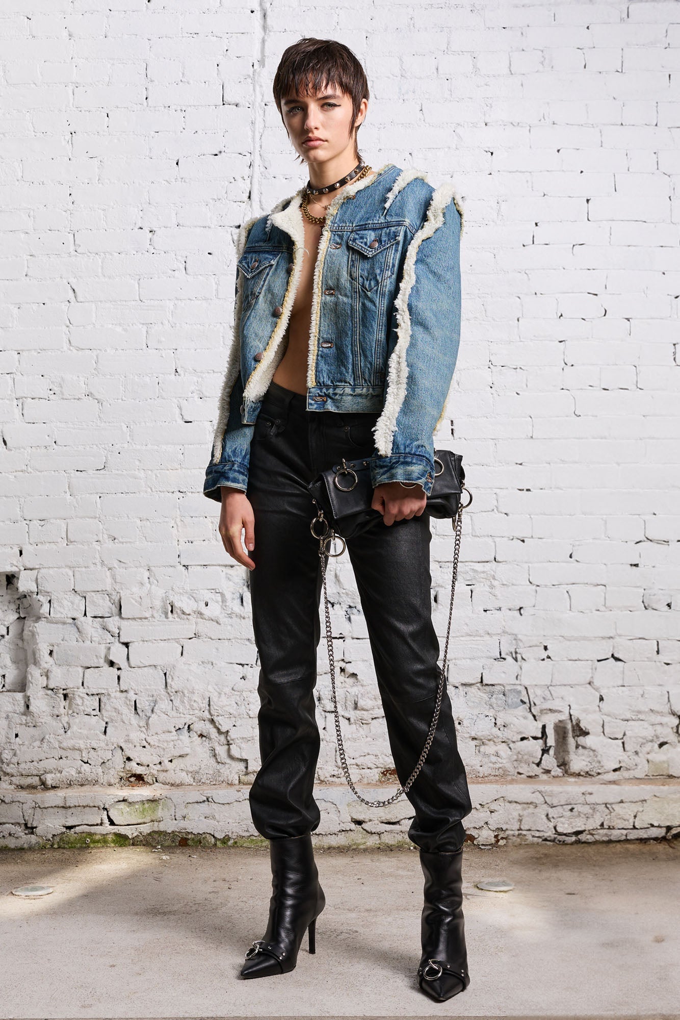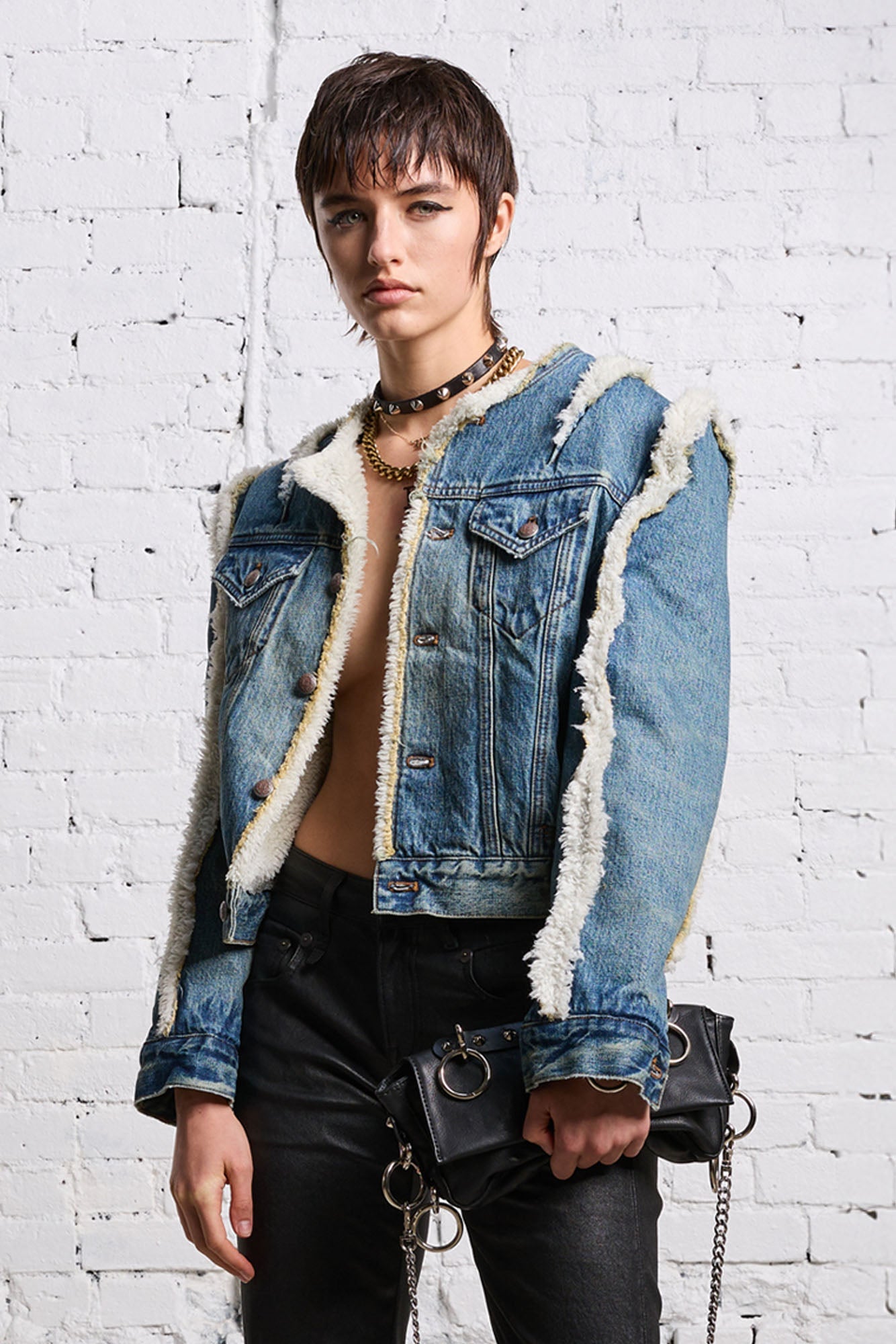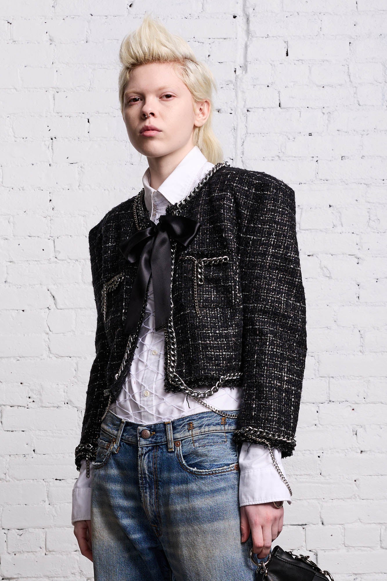 CHAIN EMBELLISHED CROPPED CHORE JACKET