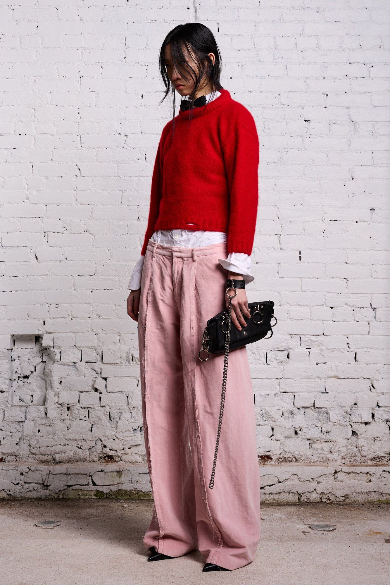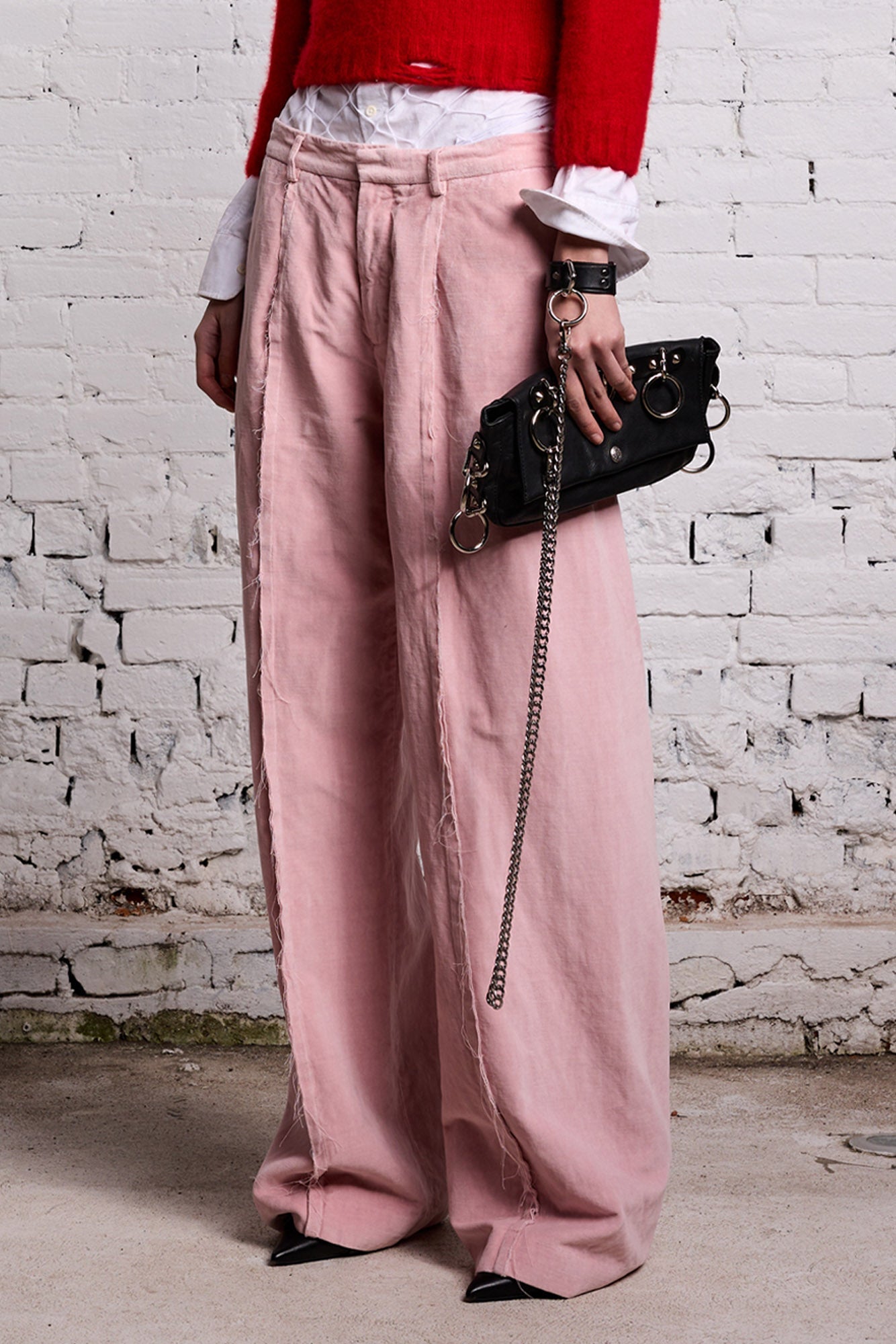 PLEATED POCKET STRAIGHT LEG LEATHER PANT