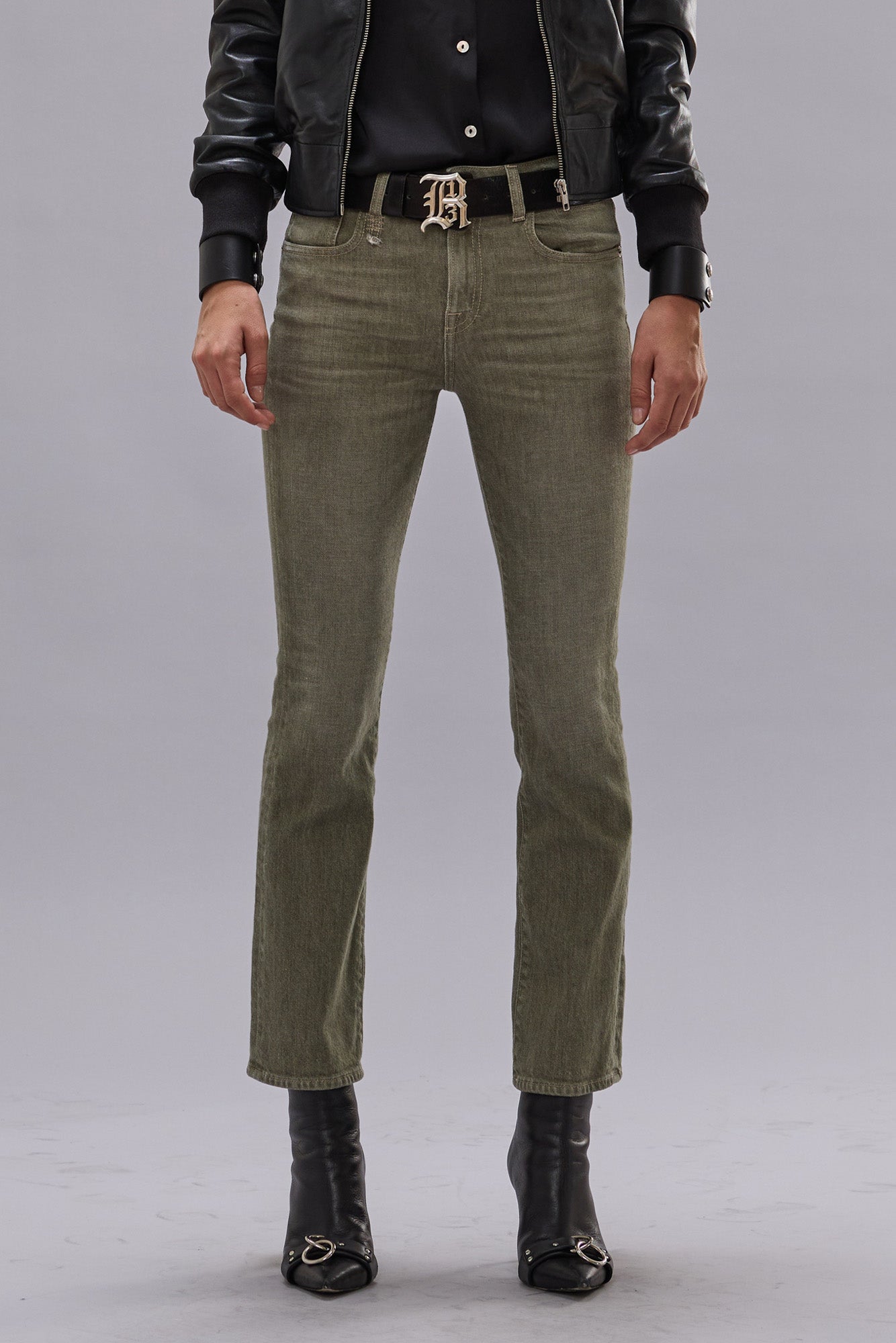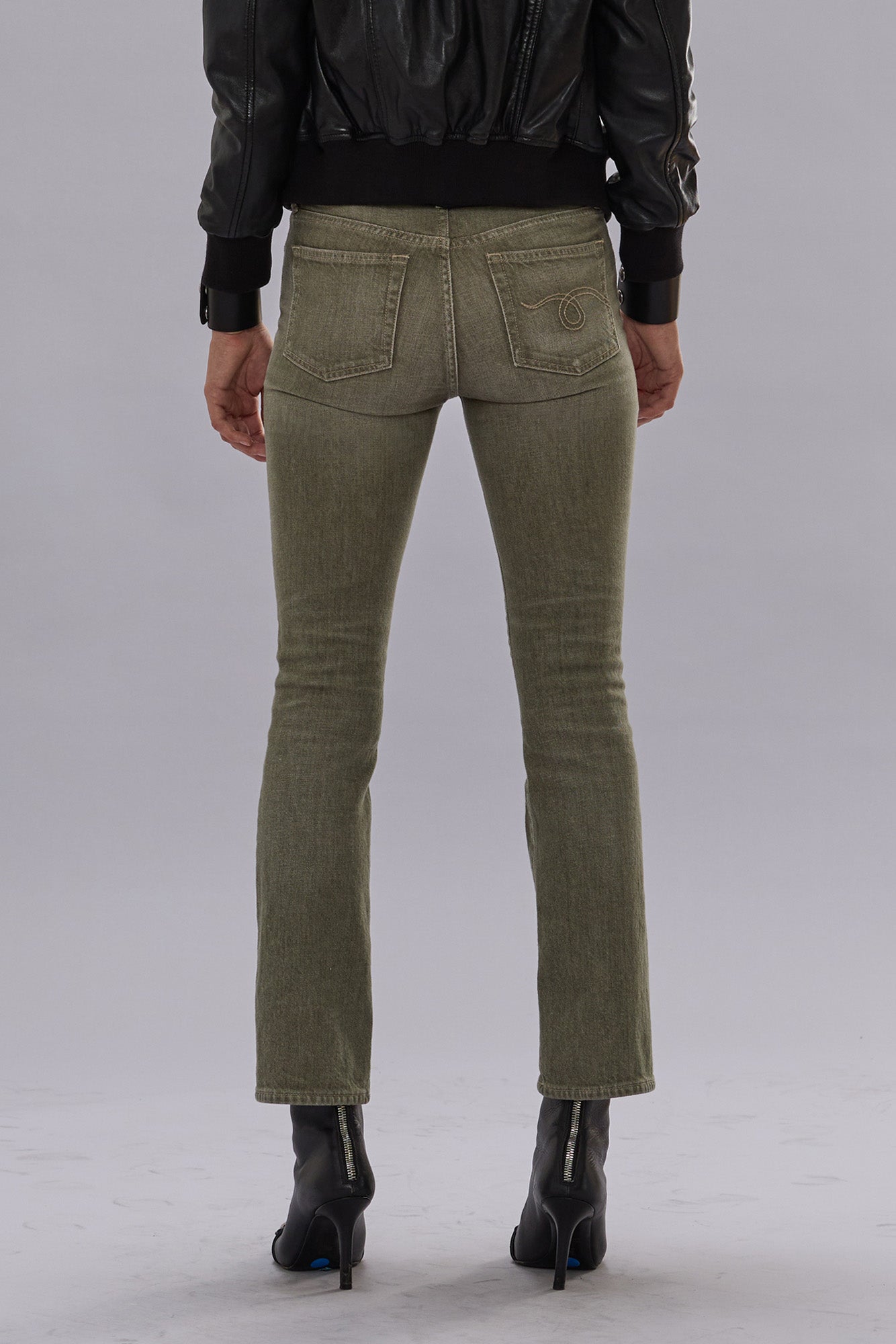 Slim straight cropped jean with a subtle flare, built with comfort stretch denim.