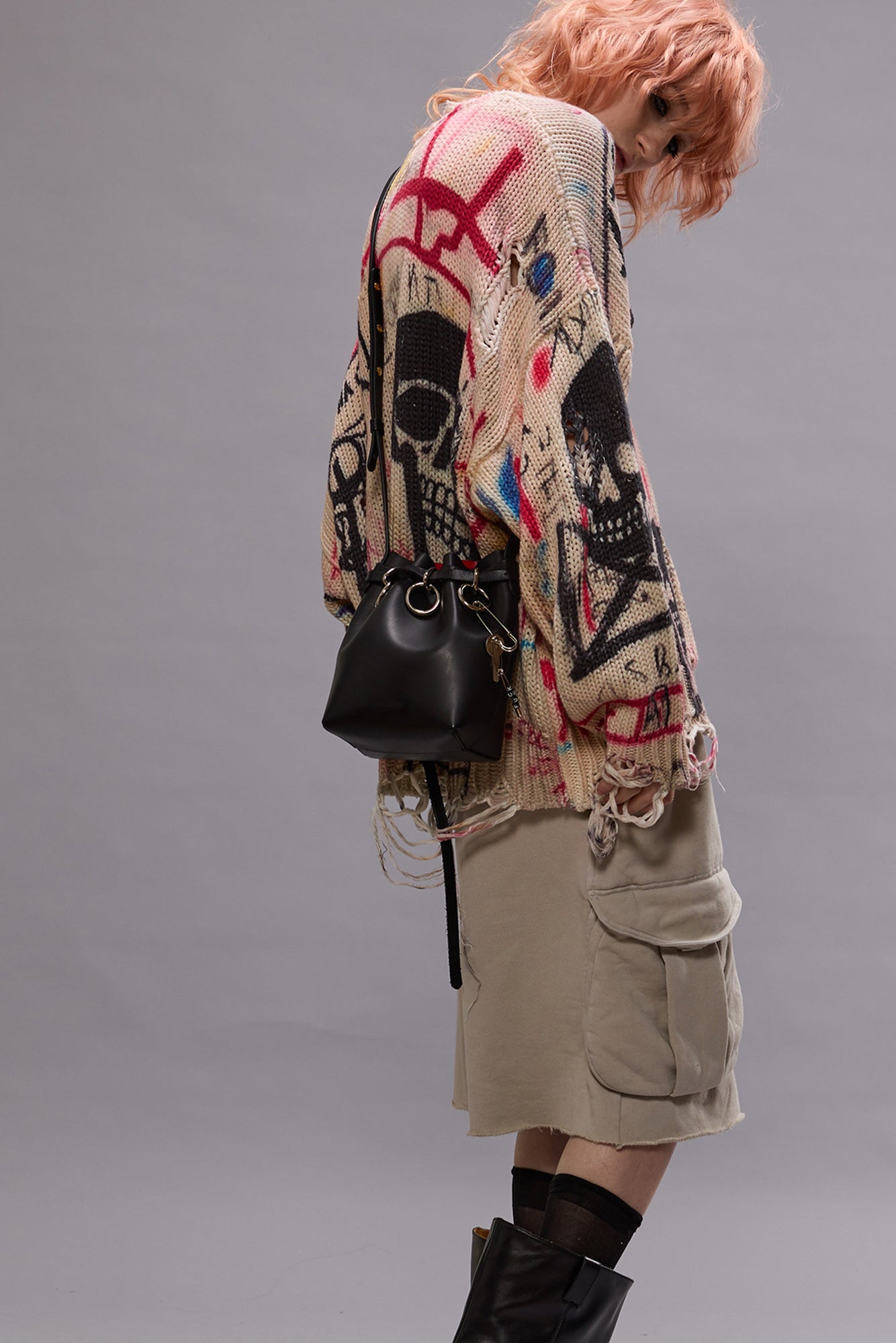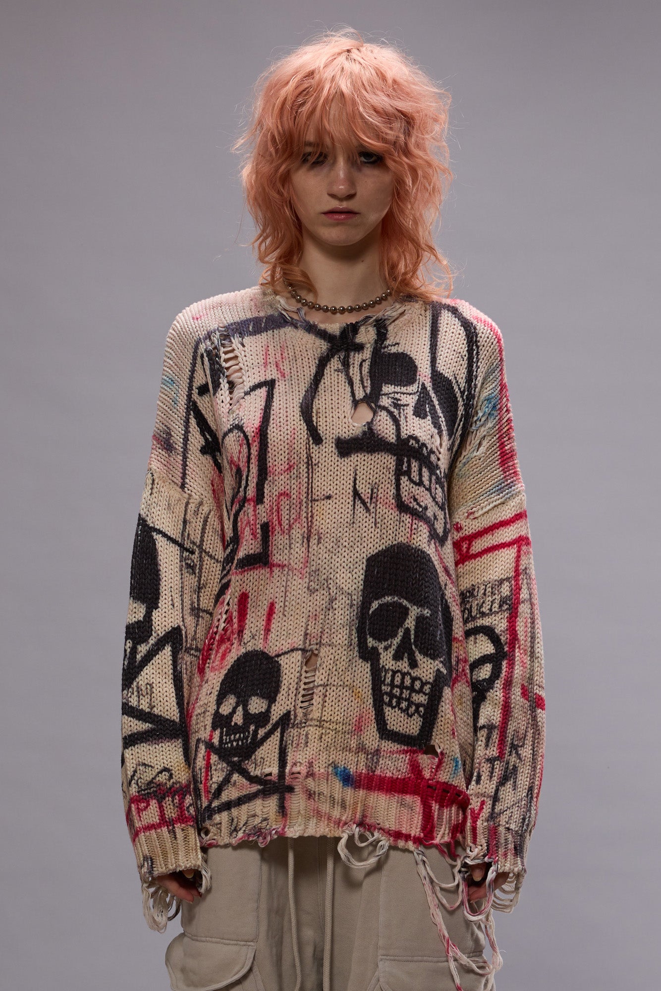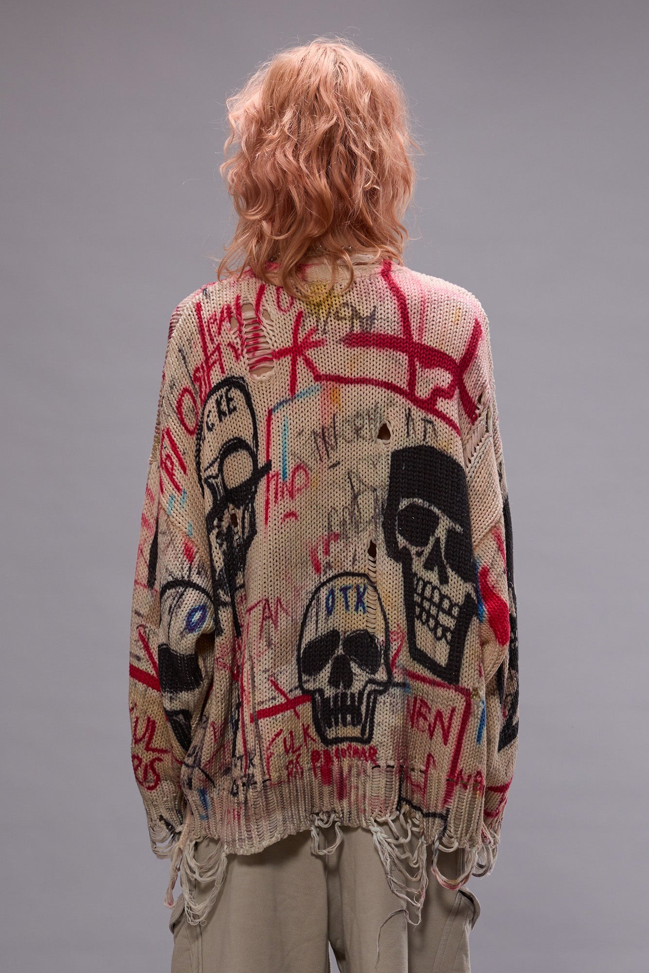 PRINTED OVERSIZED SWEATER skull graffiti print